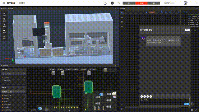 用戶也可以上傳一張方案設計草圖,HITBOT OS通過圖像解析引擎提取幾何特征與功能意圖,結合物理仿真引擎自動生成3D工程方案,并同步輸出設備電氣圖。系統以“感知-認知-生成”閉環打通二維圖像到三維執行的鏈路,展現多模態交互在敏捷制造中的革新價值,為柔性生產提供實時響應能力。