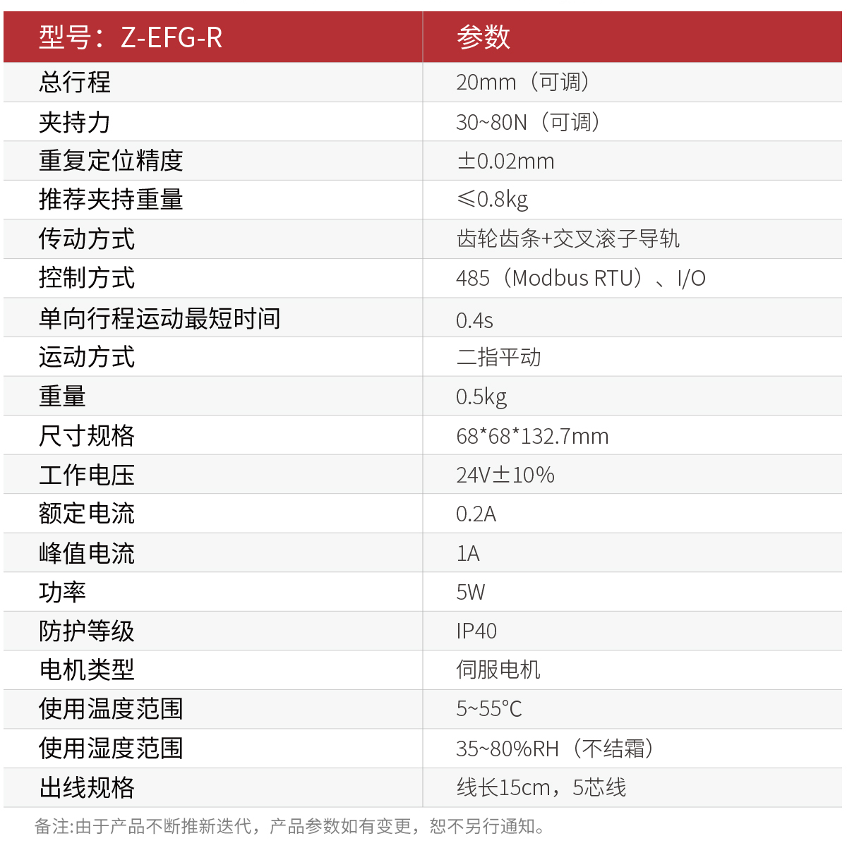 Z-EFG-R 核心參數
